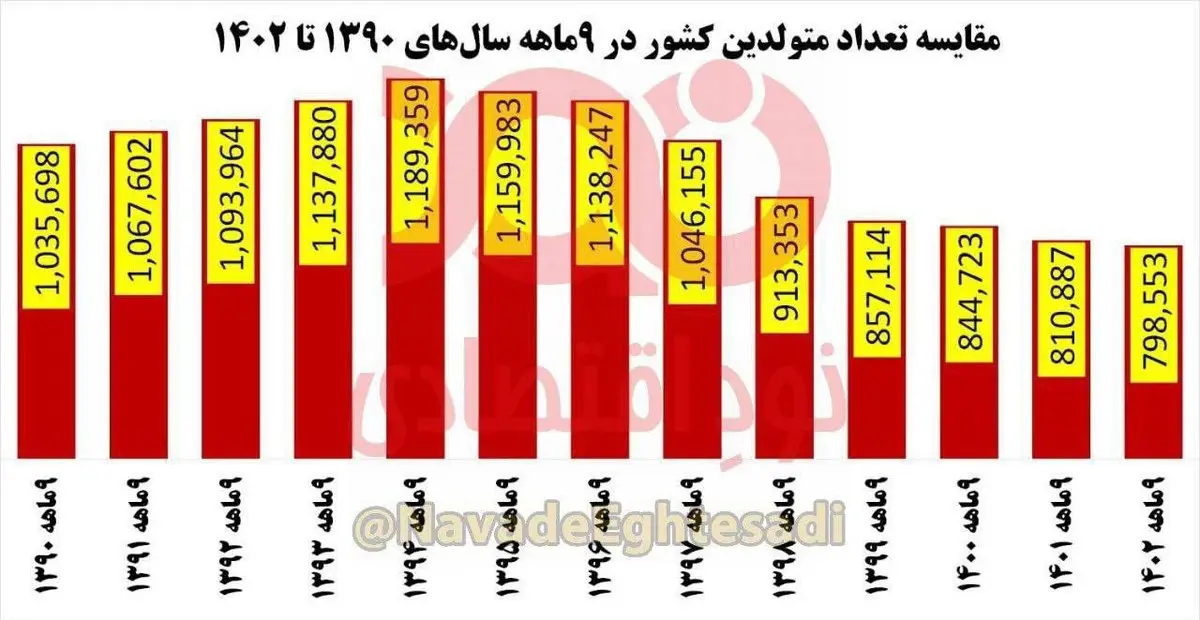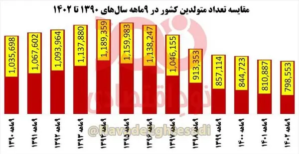 قابل ذکر است در ۹ ماهه سال‌های ۱۳۹۰ تا ۱۳۹۷ تعداد متولدین کشور بیش از یک میلیون نفر بوده است که تعداد فعلی متولدین حدود ۲۵۰ تا ۳۵۰ هزار نفر کمتر از آن دوره است.