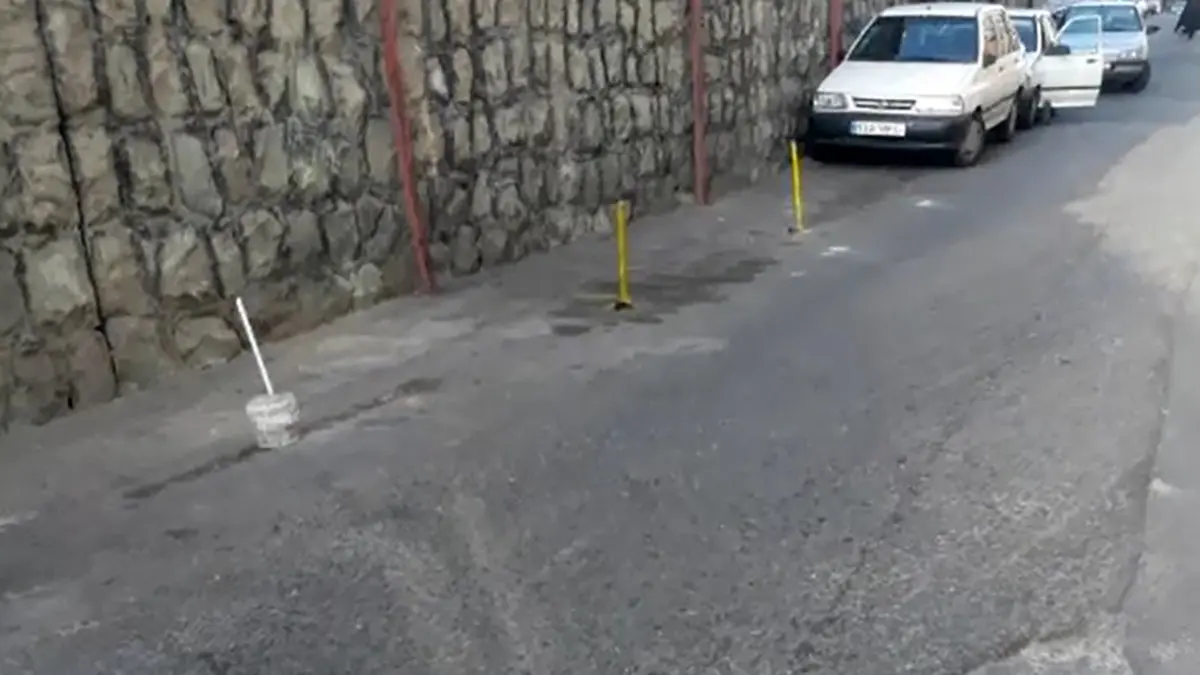 فرو کردن میلگرد در آسفالت و غصب جای پارک در تهران! / اهالی شمیران نو: ما امنیت روانی و جانی نداریم + فیلم