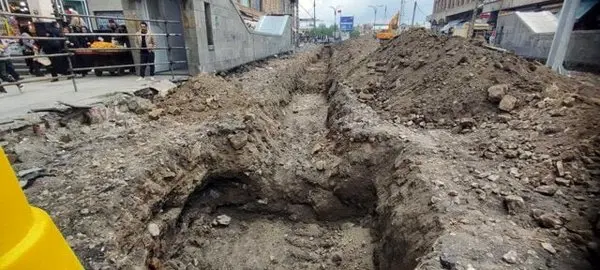 کشف یک دیواره تاریخی از یک بنا در همدان
