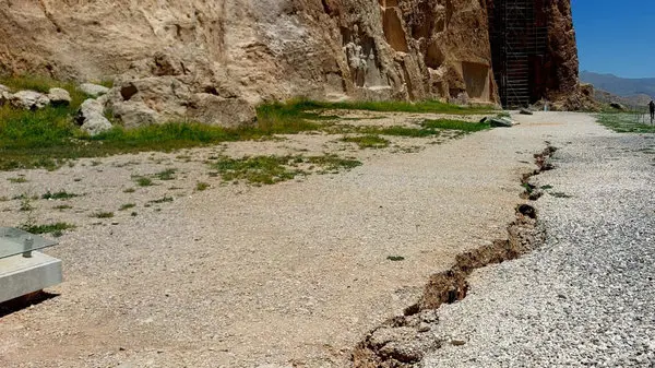 در محوطه های تخت جمشید شکاف های ناشی از فرونشست دیده شده است