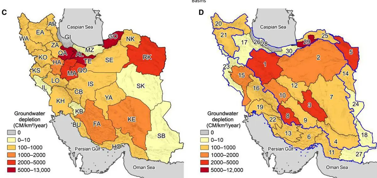 رکنا:بر اساس برآوردهای حاصله از داده های فرونشست زمین برای کل ایران در مقاله Science Advances، استان خراسان رضوی رتبه نخست در ایران را در تنش و نابودی منابع آب زیرزمینی اش دارد.