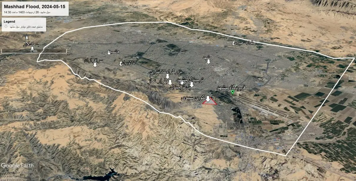 که با نگاه به تصویر هوایی چندسال اخیر مشهد و ساخت و سازها در مسیر طبیعی آبراهه مقصران دیگری نیز مشخص می شوند.