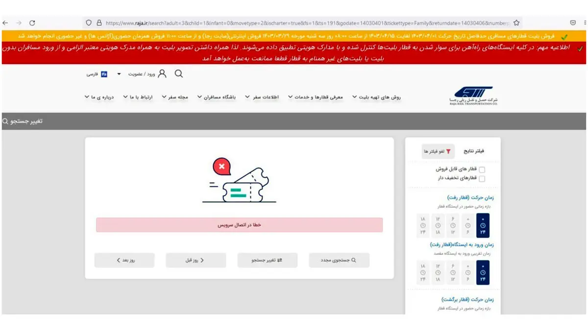 بلیط قطار تمام شد / اختلال در سایت فروش رجا!