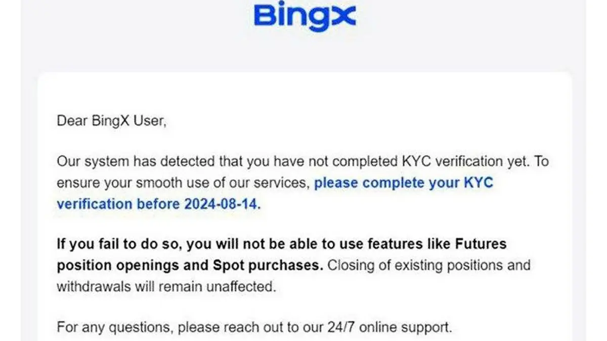 به گزارش رکنا، کاربران ایرانی از دریافت پیامی از طرف بینگ ایکس خبر دادند که هشدار داده سریعتر مدارکی جهت احراز هویت ارائه دهند، در غیر این صورت حساب آنها بسته میشود.