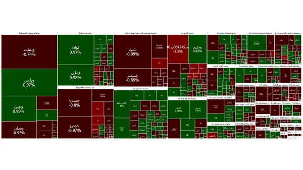 نمادهای «فملی، فولاد، فارس، نوری، شپدیس و کچاد » بیشترین اثر مثبت و نماد "شپنا" بیشتربن اثر منفی را بر شاخص بورس گذاشتند.