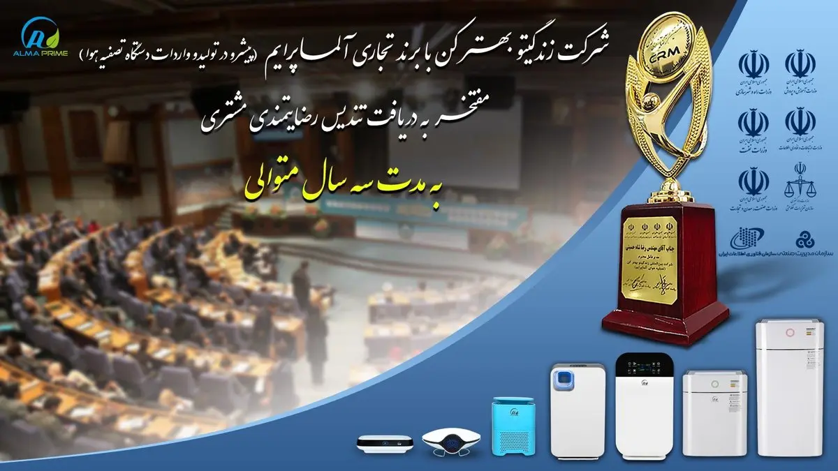 تصفیه هوا آلماپرایم، به عنوان برند پیشرو کشور در حوزه تولید و واردات دستگاههای تصفیه هوا و بخور سرد و گرم، توانست برای سومین سال پیاپی تندیس رضایتمندی مشتری را به خود اختصاص دهد. این جایزه که بهعنوان یکی از معتبرترین جوایز در حوزه خدمات مشتریمدار شناخته میشود، بازتابدهنده تلاشهای بیوقفه این شرکت در ارائه محصولاتی با بالاترین کیفیت و خدماتی مطابق با استانداردهای جهانی است. آلماپرایم با رویکردی متمرکز بر سلامت و بهداشت همگانی، موفق شده است اعتماد مشتریان را جلب و نقش مهمی در ارتقای کیفیت زندگی خانوادهها و جامعه در ایران ایفا کند.