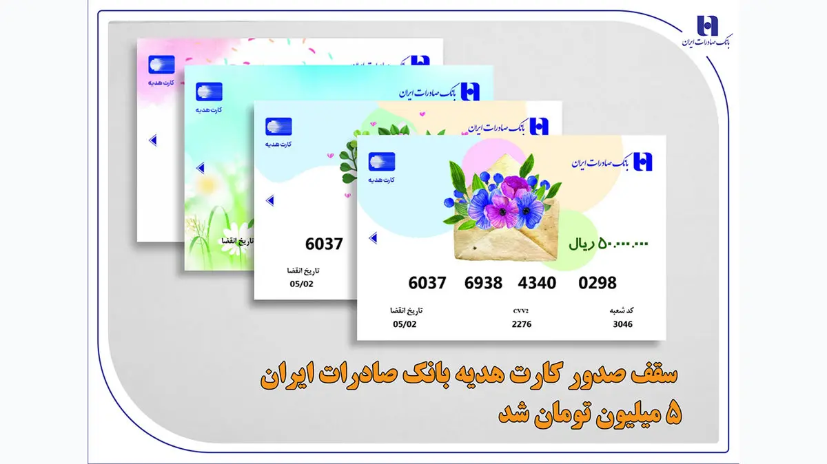 سقف صدور کارت هدیه بانک صادرات ایران 5 میلیون تومان شد