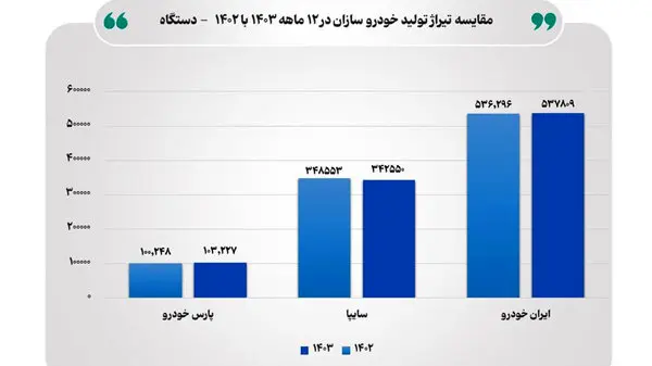 جدول تولید و فروش خودروسازان در سال 1403 / افت سایپا، رشد پارس خودرو