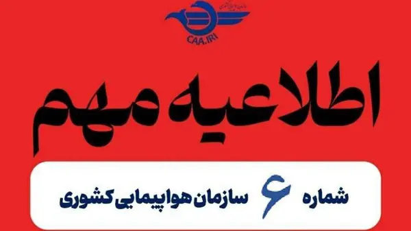 به گزارش روابط عمومی سازمان هواپیمایی کشوری: با توجه به شرایط فعلی خاص کشور و حفظ آرامش و امنیت مسافران و ایمنی پروازها، تاکید می‌شود که بر اساس پروتکل‌های موجود هرگونه اطلاع رسانی از طریق سایت هواپیمایی کشوری به نشانی www.caa.gov.ir   انجام و قابل مشاهده است و از هرگونه مراجعه حضوری به فرودگاه های کشور خودداری نمایند.