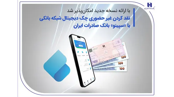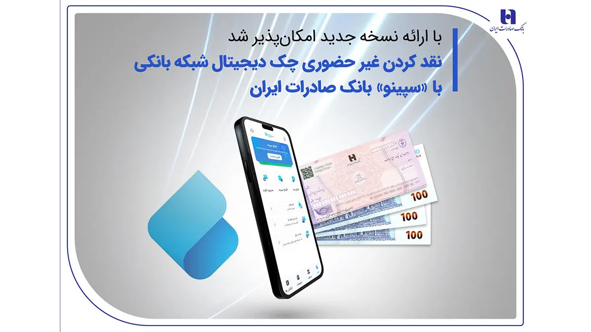 نقدکردن غیرحضوری چک دیجیتال شبکه بانکی با «سپینو» بانک صادرات ایران