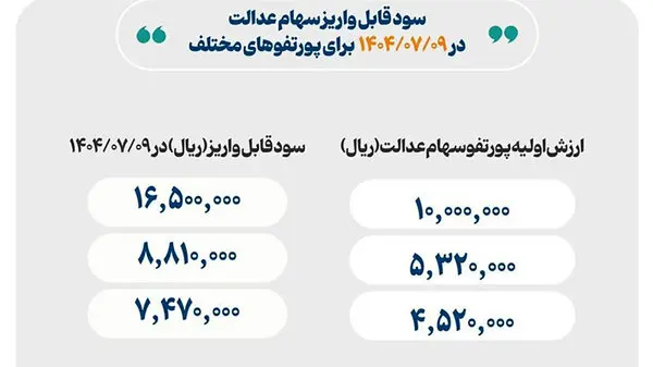 واریزی سود سهام عدالت از امروز حداکثر یک میلیون و 650 هزار تومان