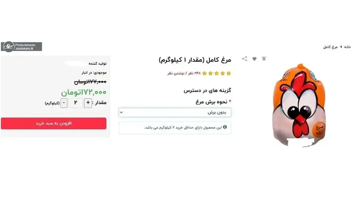 به گزارش جماران، با این حال، بازار روایت دیگری دارد . دادستان تهران نرخ مصوب مرغ را ۱۳۵ هزار و ۷۰۰ تومان اعلام کرده و هشدار داده بود با فروش بالاتر برخورد میشود. اما گزارشهای میدانی نشان میدهد قیمت واقعی در بازار با رقم مصوب فاصله چشمگیری دارد. در حالی که نرخ رسمی کشتار مرغ بین ۱۳۲ تا ۱۵۵ هزار تومان است، قیمت در خردهفروشیها از ۱۴۵ تا ۱۵۷ هزار تومان و در برخی فروشگاههای آنلاین حتی تا ۱۷۲ هزار تومان رسیده است.