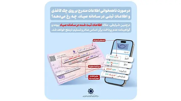 بر این اساس، در صورت مغایرت بین اطلاعات هویتی گیرنده چک، مبلغ یا تاریخ درجشده در نسخه کاغذی با اطلاعات متناظر ثبتشده در سامانه صیاد، بانک دارنده حساب صرفاً مجاز به استناد به اطلاعات سامانه صیاد است و نسخه کاغذی فاقد اعتبار عملیاتی خواهد بود.
