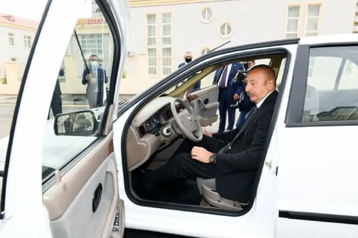به گزارش اقتصادی رکنا، در تصاویر منتشر شده « الهام علی اف » رییس جمهوری آذربایجان در دیدار با جمعی از اعضای خانواده قربانیان و معلولین جنگ «قره باغ»، پشت فرمان خودروی سواری «خزر» که همان سمند است و مدعی هستند تولید مشترک ایران و جمهوری آذربایجان است، نشست.