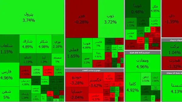 بورس امروز در روز تنفیذ رئیسی سبز شد + جدول نمادها