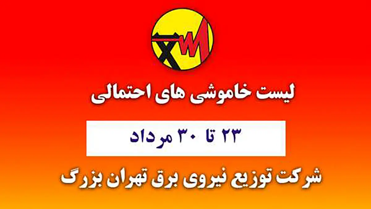 جدول خاموشی های احتمالی برق شهر تهران از تاریخ 23 تا 30 مردادماه 1400 اینجا کلیک کنید