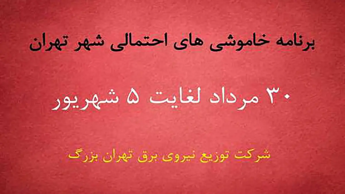 جدول خاموشی های احتمالی برق شهر تهران از تاریخ ۳۰ مرداد لغایت ۵ شهریور اینجا ببینید