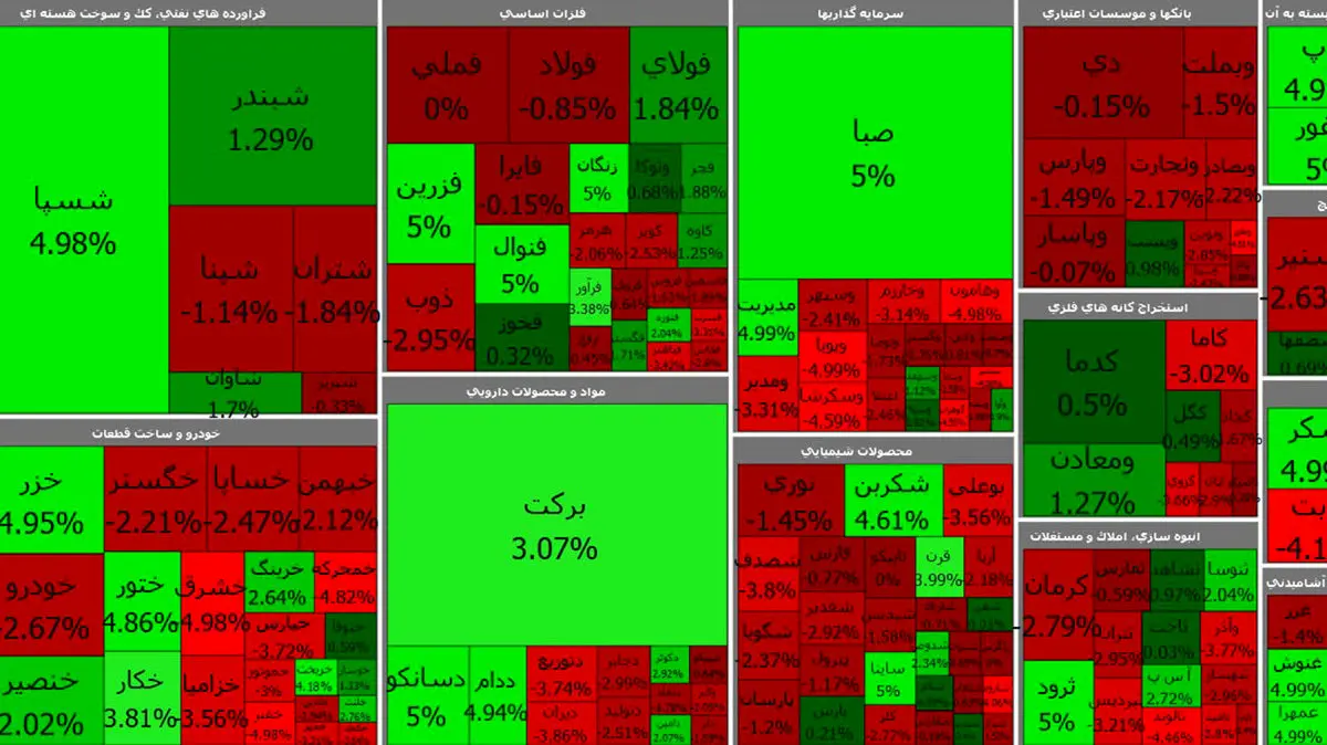 بورس امروز با سقوط شاخص سازها آغاز شد / برکت سبز ماند + جدول نمادها
