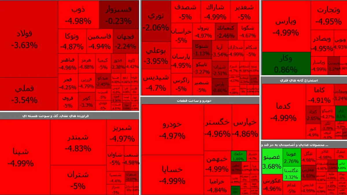 بورس رها شده است و همچنان در مسیر سقوط قرار دارد + جدول نمادها