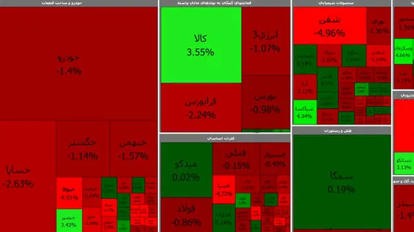 شفن، فولاد و شبندر بیشترین اثر منفی و نمادهای کالا، سمگا و زاگرس بیشترین اثر مثبت را بر روند حرکت شاخص گذاشتهاند.