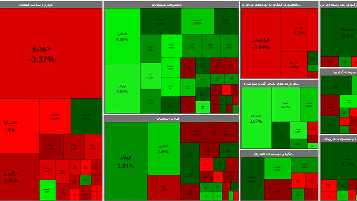 بورس امروز هم حال خوشی ندارد / خودرویی ها قرمز شدند + جدول نمادها