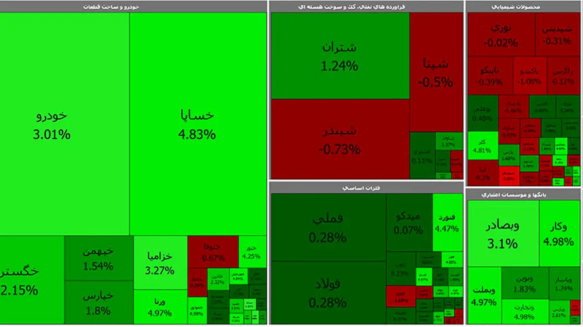 بورس امروز کانال یک میلیون و 300 هزار واحدی را پس گرفت + جدول نمادها