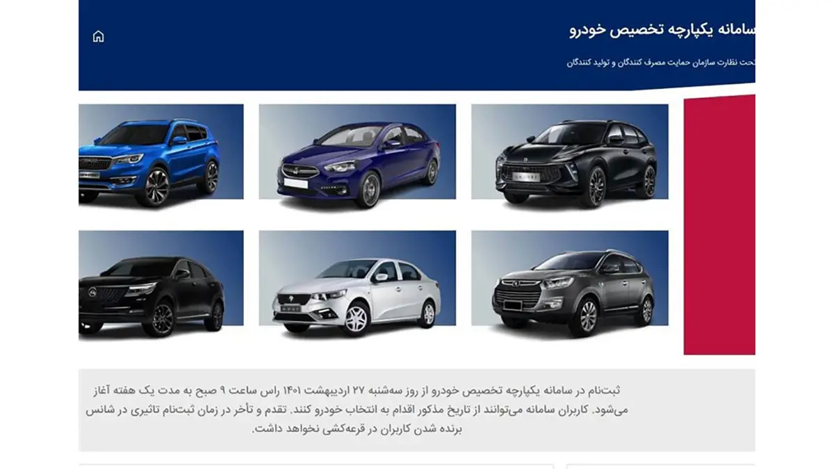 به گزارش رکنا، براساس اعلام وزارت صنعت، معدن و تجارت از سه‌شنبه 27 اردیبهشت‌ماه، امکان ثبت‌نام متقاضیان خرید خودرو در سامانه یکپارچه تخصیص خودرو فراهم شده است به‌نحوی که متقاضیان قادرند طبق  بخشنامه‌های مختلف فروش خودرو که از سوی تمام شرکت‌های خودروسازی ارائه‌ شده است نسبت به ثبت‌نام اقدام کنند.