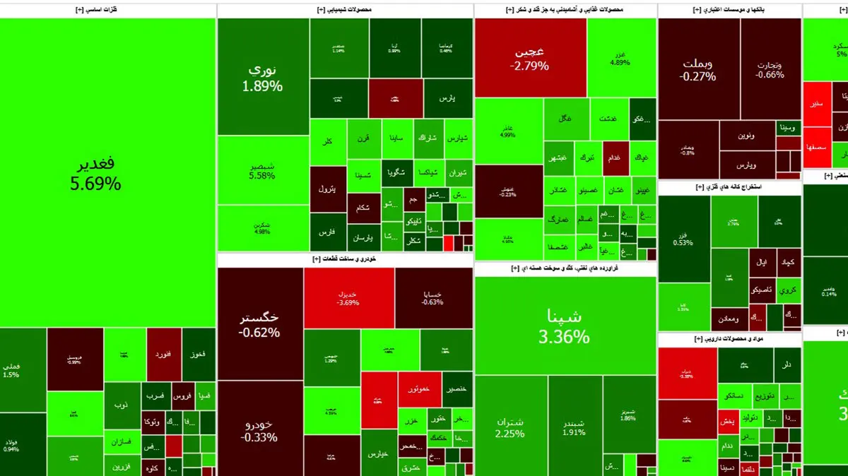 نمادهای شپنا، فملی، نوری، شتران و شبندر بیشترین اثر مثبت و نمادهای خودرو و وتجارت بیشترین اثر منفی را بر بورس گذاشتند.