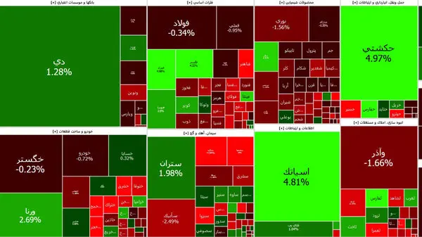 نماد حکشتی بیشترین اثر مثبت و نمادهای فملی، نوری و فولاد بیشترین اثر منفی را بر بورس گذاشتند.
