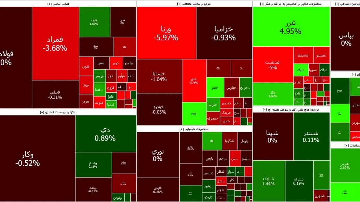 نمادهای فولاد، شبندر و خودرو بیشترین اثر مثبت و نمادهای فارس، شستا، فملی و وساپا بیشترین اثر منفی را بر بورس امروز گذاشتند.