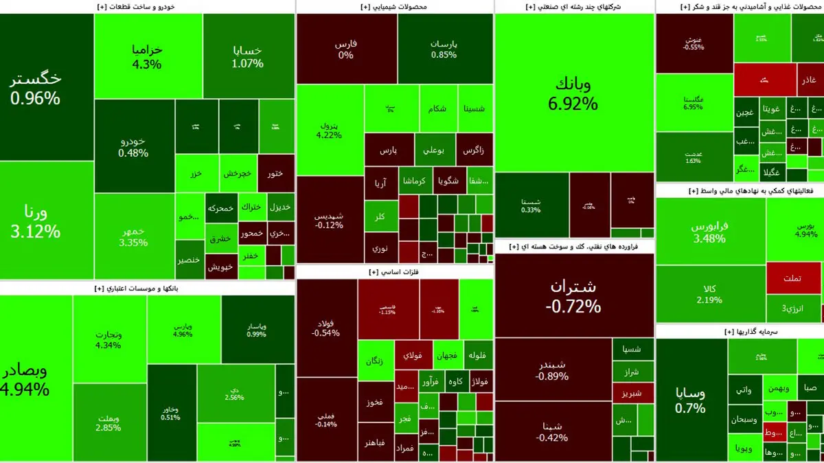 نمادهای وبانک، حکشتی، وبملت، وپارس و وبصادر بیشترین اثر مثبت و نمادهای شتران و شبندر بیشترین اثر منفی را بر بورس امروز گذاشتند.