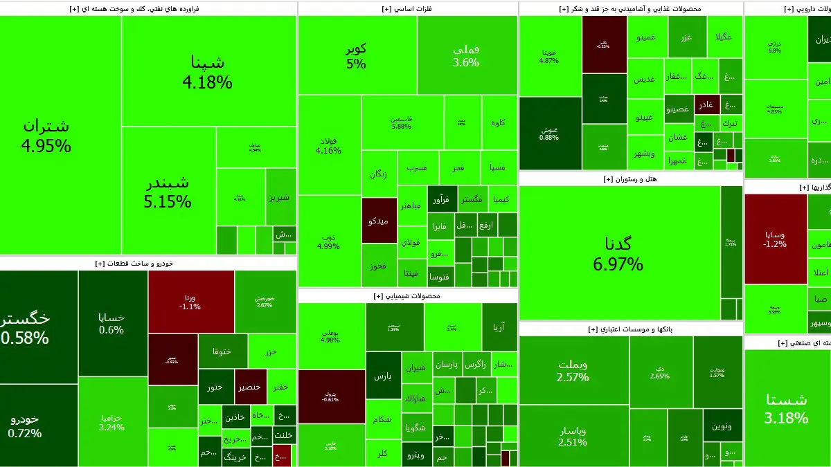 نمادهای فولاد، فارس، فملی، شبندر، شپنا، شتران و شستا بیشترین اثر مثبت را بر بورس امروز گذاشتند.