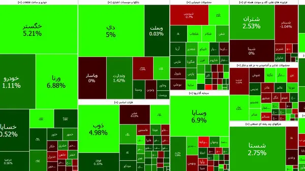 شاخص بورس امروز با افزایش نسبی مواجه شد / شستا و خودرو سبز شدند + جدول نمادها