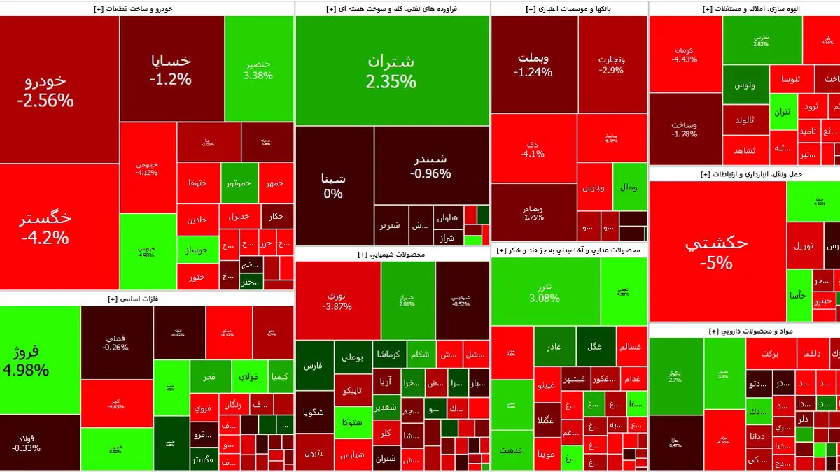 نمادهای میدکو، حکشتی، نوری، وپاسار، خودرو و شستا بیشترین اثر منفی و نماد شتران بیشترین اثر مثبت را بر بورس امروز گذاشتند.