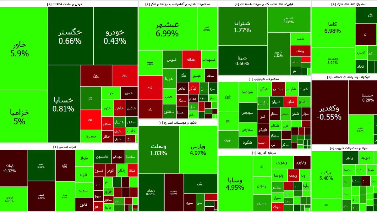 شاخص کل هم وزن امروز سبز شد و با رشد 11 هزار و 14 واحدی در ارتفاع 730 هزار و 753 واحد قرار گرفت.