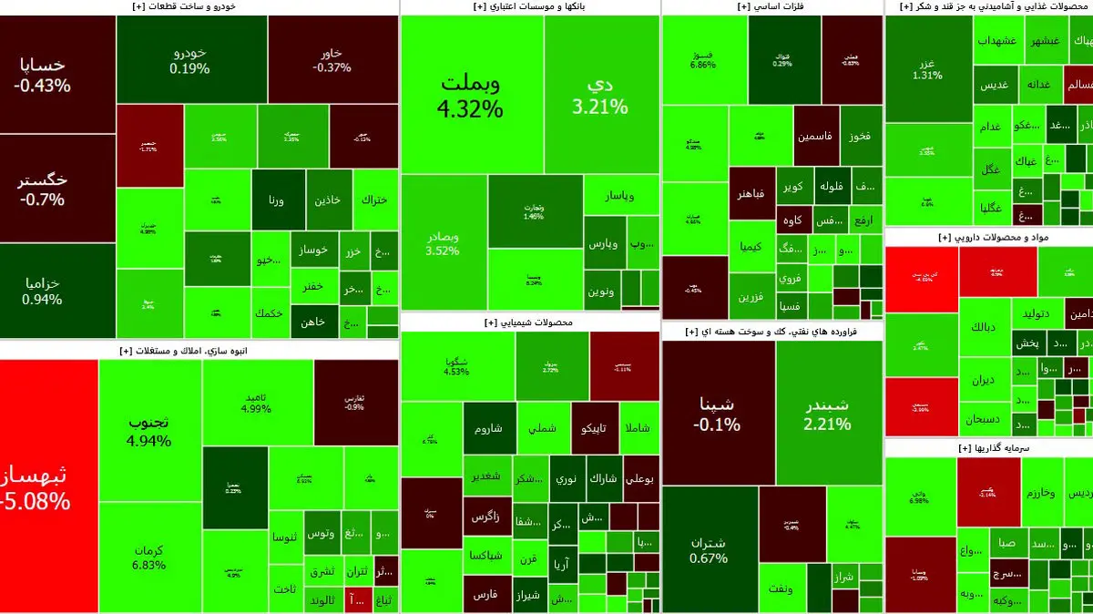 گفتنی است نمادهای میدکو، وبملت، شبندر، حکشتی، شستا، وپاسار و اخایر بیشترین تاثیر در شاخص کل بورس را داشته اند.