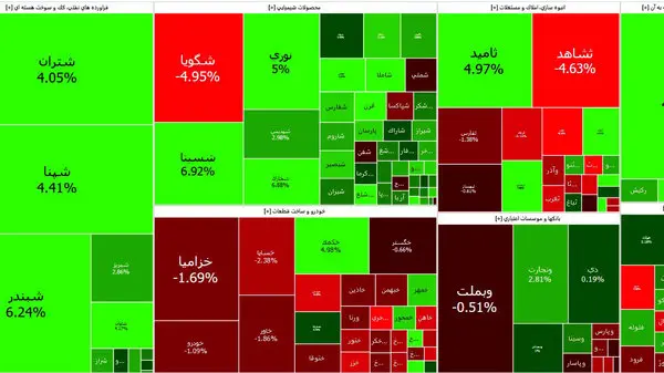 گفتنی است نمادهای شپنا، شبندر، شتران، نوری، تاپیکو، شپدیس و وامید بیشترین اثر مثبت را در شاخص کل بورس امروز داشته اند.