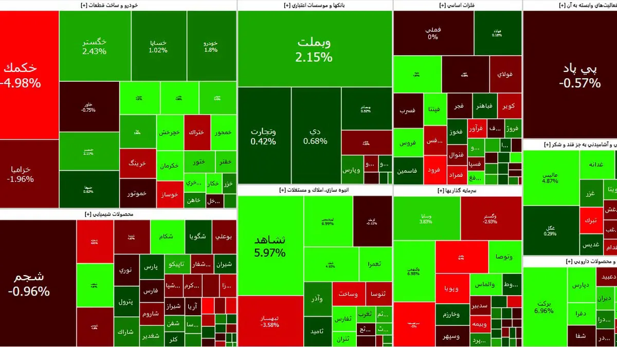 گفتنی است 4 نماد وبملت، خودرو، وتجارت و برکت بیشترین تأثیر مثبت در شاخص کل بورس و 3 نماد شخارک، شپدیس و رمپنا بیشترین اثر منفی را در شاخص کل بورس داشتند.