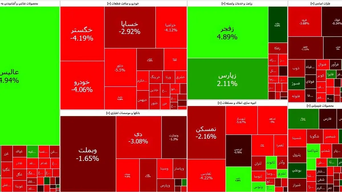 شاخص هم وزن نیز 11 هزار واحد از ارتفاع خود را از دست داد و با ریزشی 1.66 درصدی به ارتفاع 732 هزار واحد رسید.