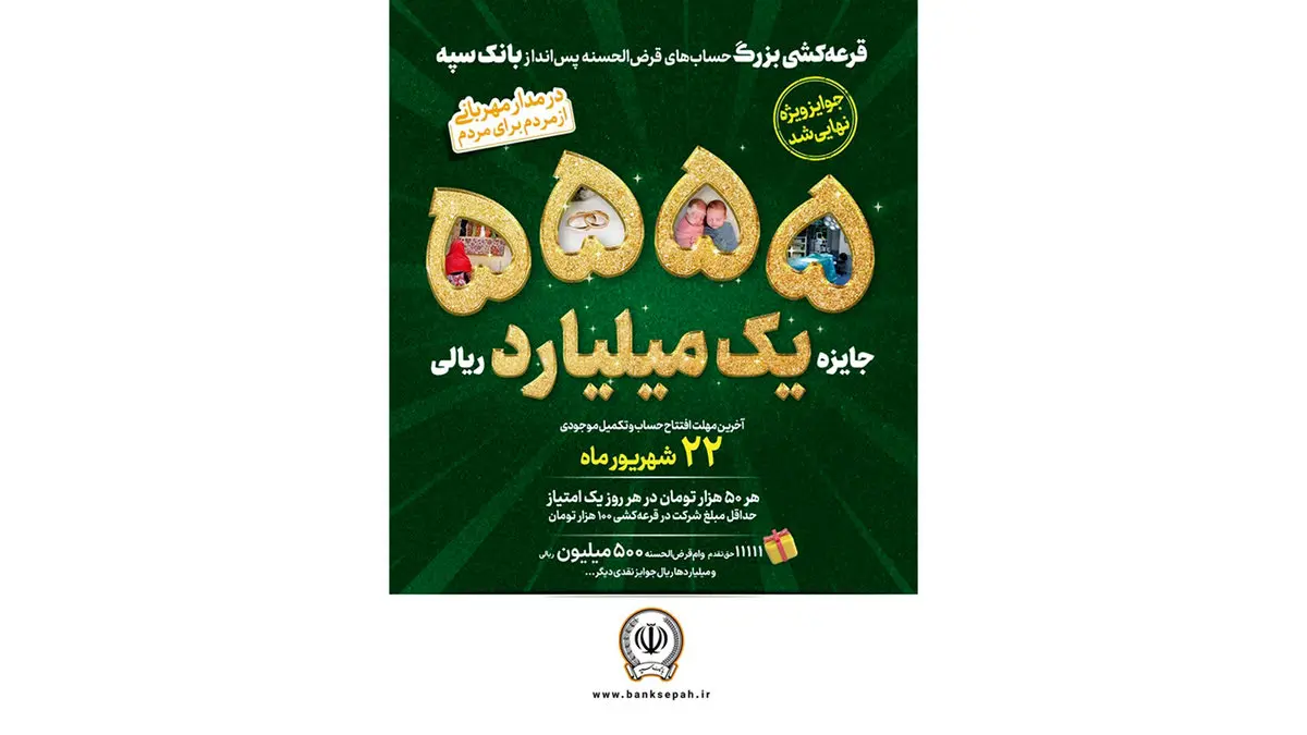 افزایش جوایز جشنواره بزرگ قرعه کشی حساب های قرض الحسنه پس انداز بانک سپه
