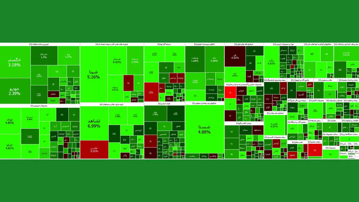 نمادهای پالایشی و خودرویی بیشترین رشد را امروز تجربه کردند.