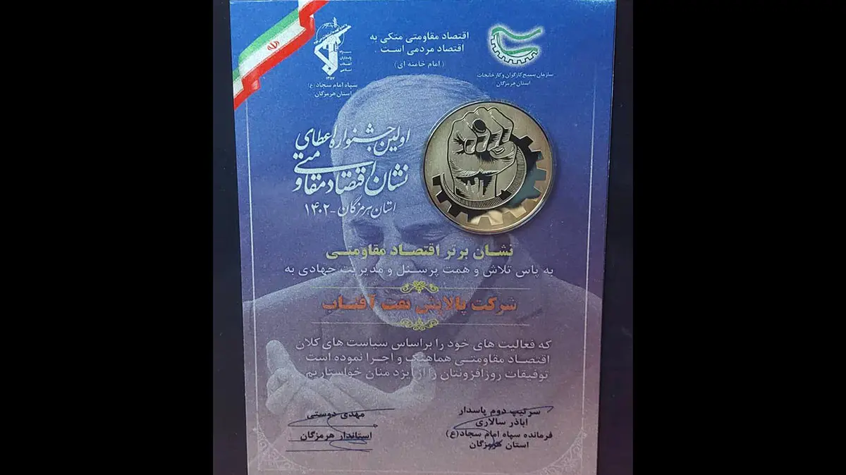کسب مقام برتر نشان اقتصاد مقاومتی توسط شرکت پالایش نفت آفتاب