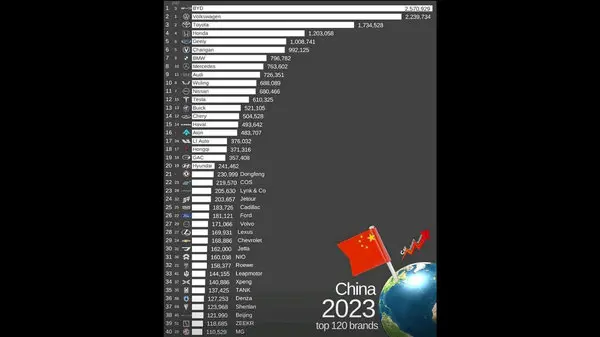 آمار فروش برندهای خودرویی در چین در سال 2023