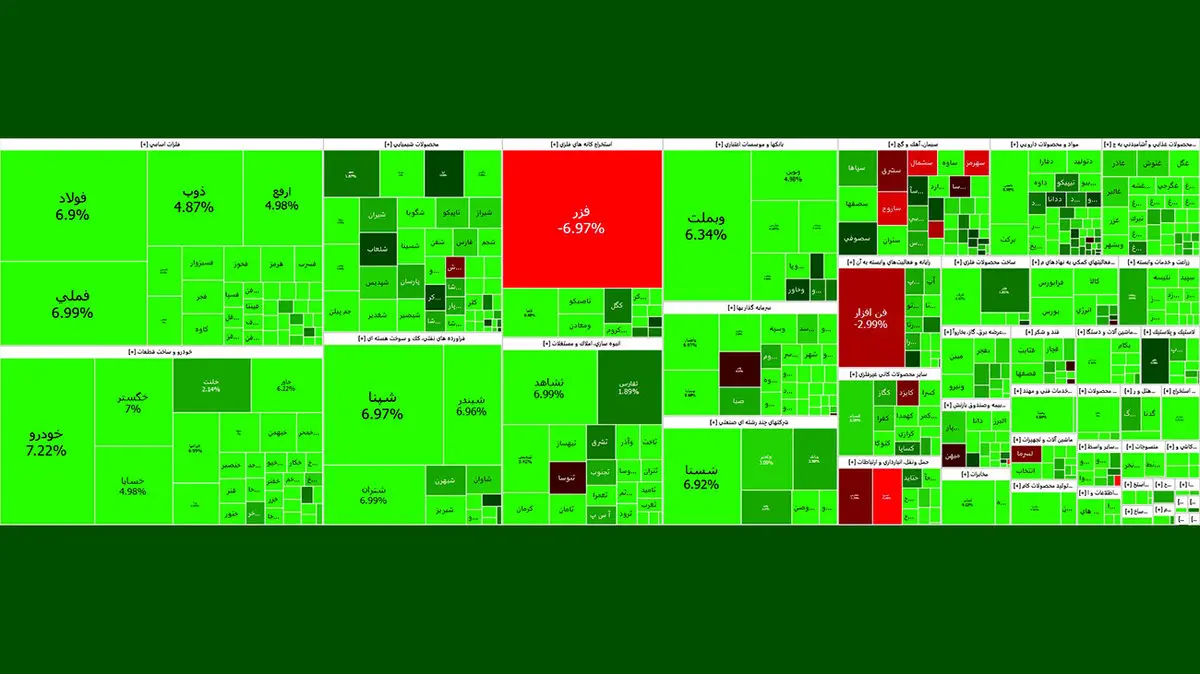 گفتنی است، نمادهای فملی، فولاد، شپنا، فارس، شستا، شبندر و وبملت بیشترین اثر مثبت را بر شاخص بورس گذاشتند.