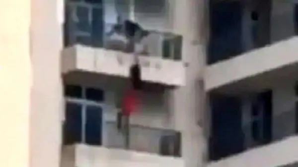 در ویدئویی که منتشر شده در حالی که این زن از بالکن آویزان است دیده میشود. در این ویدئو شوهر قربانی در حالی که دست او را گرفته تلاش میکند مانع سقوط وی به پایین شود. این ویدئو نشان میدهد لحظاتی بعد دست قربانی از دست شوهرش جدا شده و این زن به پایین سقوط میکند. بنا به گزارش رسانههای محلی هند این زن پس از این حادثه در حالی که دچار جراحت شدید شده بود به بیمارستان منتقل شد. رسانههای محلی هند حال او را وخیم گزارش کردند.