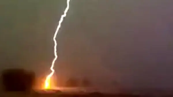 فیلم لحظه برخورد صاعقه به زمین / در کرمان رخ داد