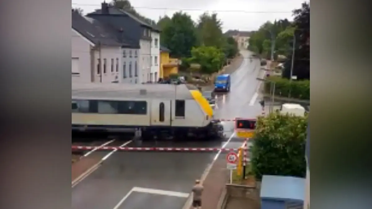 یک دستگاه خودرو در شهر لوکزامبورگ، روی ریل راه آهن گرفتار شد. در همین لحظه قطار نیز سر رسید و به شدت با این وسیله نقلیه برخورد کرد. خوشبختانه سرنشین خودرو قبل از حادثه، از آن پیاده شده بود.
