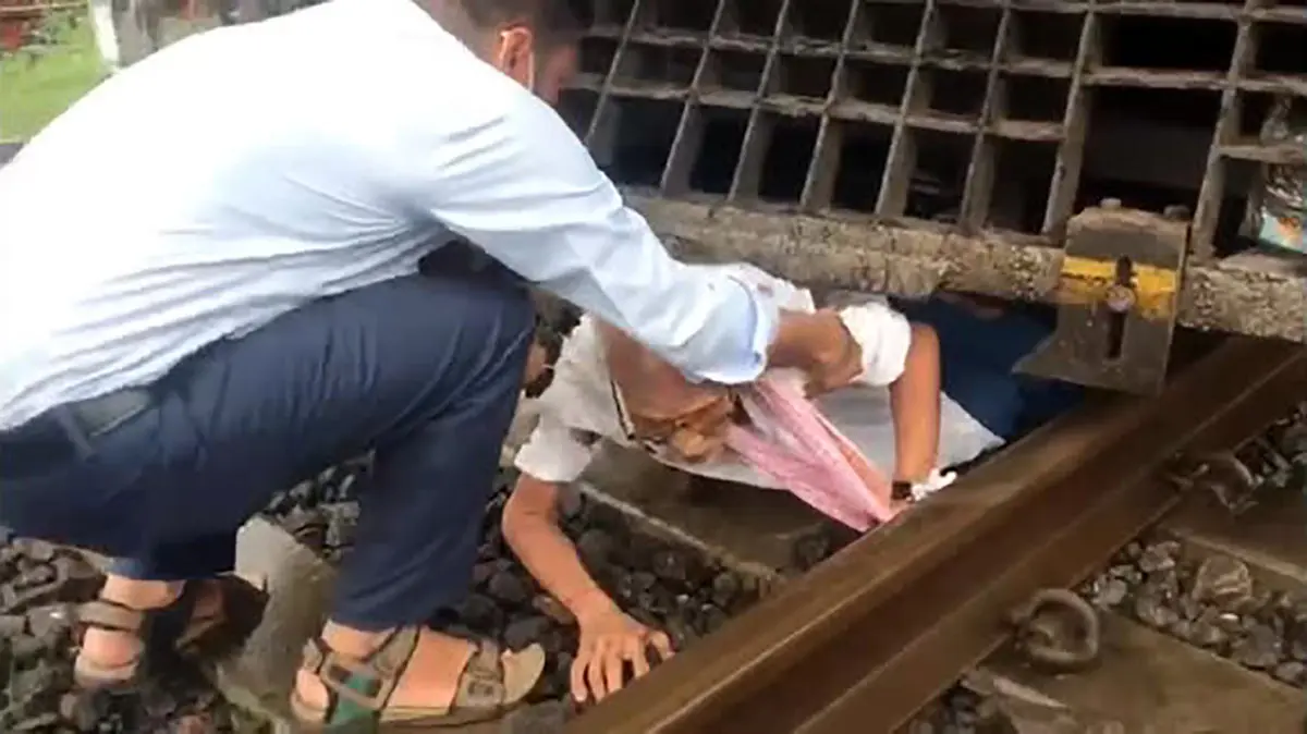 پیرمرد هندی به طور معجزه آسایی از مرگ نجات یافت. این پیرمرد خوش شانس زنده از زیر چرخ های قطار بیرون کشیده شد.
