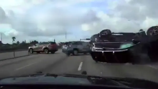 به گزارش رکنا، این ویدئو در تاریخ ۱۹ مه ضبط شده، زمانی که پلیس در تعقیب ۵ نوجوانی بود که اقدام به ربودن یک خودروی شاسیبلند از خانهای در شهر فورت لادردیل کرده بودند. این خودرو در تلاش برای خروج از بزرگراه بود که با دو خودرو دیگر تصادف کرد.