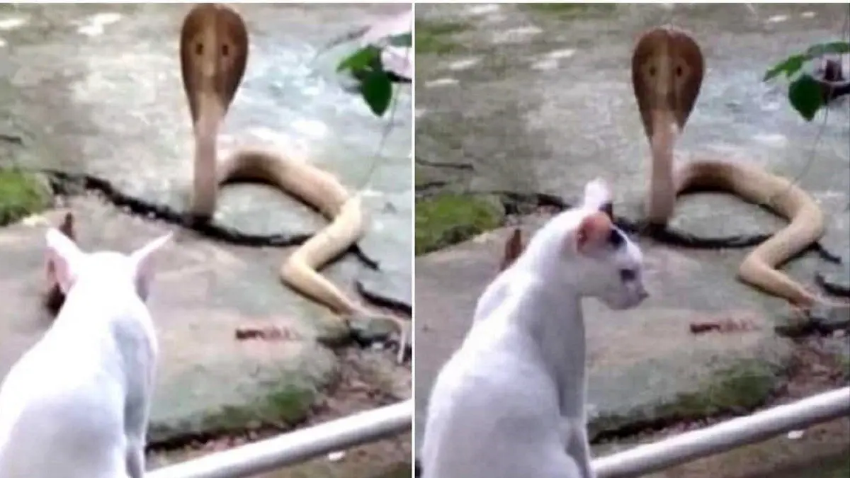 یک گربه مانند نگهبان عمل کرد و به مدت 30 دقیقه جلوی مار کبرا ایستاد تا به داخل خانه این مار وارد نشود.